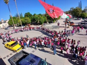 Como parte de las actividades de la lucha contra el cáncer de mama, se realizó un desfile encabezado por el Ing. Andrés Rubio Castro y su señora esposa la Lic. Yajaira Carrillo Jurado, Presidenta del Sistema DIF, el equipo del Centro LIBRE para mujeres, personal del Centro de Salud, y DIF municipal; así como la importante participación de nuestra comunidad estudiantil de diversas instituciones educativas del municipio, alumnas, alumnos, maestras, maestros y padres y madres de familia. El desfile culmó con la tradicional formación del listón rosa, recordando la importancia de la prevención y la detección temprana en la lucha contra el cáncer de mama.