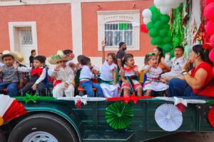 Familias San Luisenses disfrutaron del tradicional Desfile Cívico por el 215 aniversario de la Independencia de nuestro país. El recorrido culminó con un acto cultural donde disfrutamos de música en vivo de Los Fundadores, así como cuadros de danza folclórica de nuestro pequeños del preescolar, primaria y la visita del Grupo Meztli de Nazas. Con alegría compartimos momentos de risas y diversión en la lucha por los premios del Palo Encebado y los chiquitines concursaron en el marranito encebado.